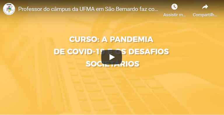 O professor Thiago Pereira Lima, do curso de Ciências Humanas - Sociologia do câmpus da UFMA de São Bernardo, convida toda a comunidade acadêmica para participar do curso “A pandemia e os desafios societários”, com carga horária de 60 horas, que vai ser realizado entre os dias 2 de julho e 7 de agosto, todas as quintas e sextas-feiras. Os interessados podem fazer suas inscrições por meio do Sistema Integrado de Gestão de Eventos (SIGEVENTOS), com link disponível no site da UFMA.