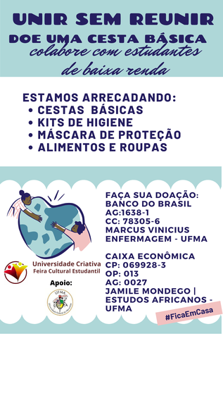 Buscando amenizar a situação dessas pessoas, estudantes da Universidade Federal do Maranhão se organizaram para realizar a campanha “Unir sem Reunir”, que tem como objetivo arrecadar doações de cestas básicas, materiais de limpeza e higiene, remédios ou dinheiro – por meio de transferências bancárias, que é utilizado para a compra dos itens.