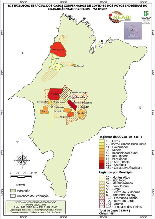 Os dados são obtidos a partir das informações divulgadas pelas secretarias de saúde tanto do Estado quanto do município. Ela afirma que esses dados são comparados com os disponibilizados pela Secretaria Especial de Saúde Indígena (SESAI), pelos órgãos indigenistas da sociedade civil e organizações indígenas. "Procuramos agrupar dados de diferentes fontes para tornar a informação mais qualificada e de fácil visualização. Um ponto essencial é a comunicação direta com membros dos diversos povos que compõe os coletivos indígenas no Estado do Maranhão", completou.