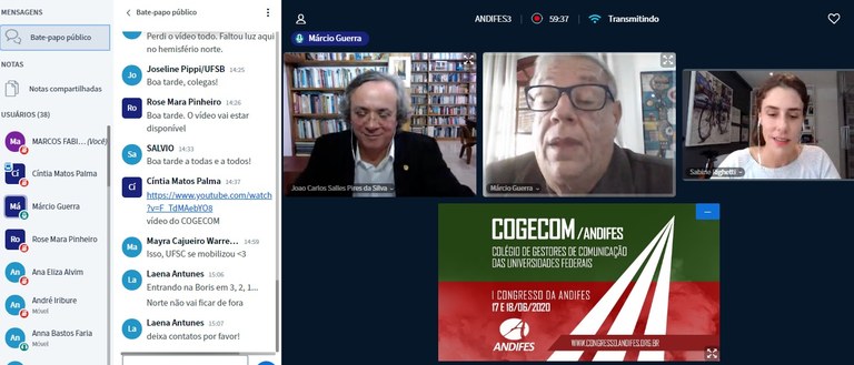 A UFMA, por meio da Diretoria de Comunicação, participou da webconferência do COGECOM – Colégio de Gestores de Comunicação das Universidades Federais. O evento é parte do I Congresso da ANDIFES – Associação Nacional de Dirigentes das Instituições Federais de Ensino Superior, que ocorre nos dias 17 e 18 de junho.