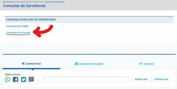 4 - Em CONHEÇA DETALHES DE SERVIDORES escolha Consulta por vínculos;