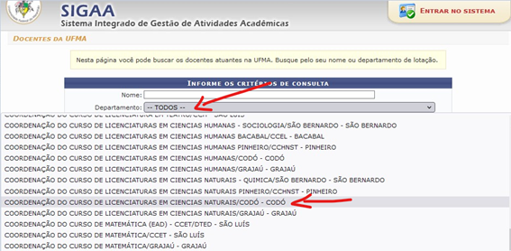 Passo a passo para consulta de docentes por nome, departamento ou coordenação: