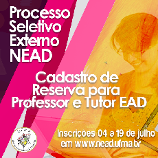 O Pró-reitora de Ensino - PROEN da Universidade Federal do Maranhão, torna público, por meio do edital 155/2018 PROEN, a abertura de inscrições para o Processo Simplificado de Seleção para Formação de Cadastro de Reserva (Externo) de Professor Formador e Tutor, para atuação nos cursos de EAD gerenciados pelo Núcleo de Educação a Distância –NEAD/UFMA.
