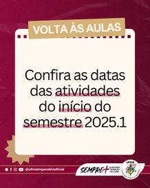 O semestre letivo terá início na próxima quarta-feira, dia 09 de abril. O Centro de Ciências de Imperatriz está preparado uma programação especial para acolher os novos ingressantes da Universidade no dia 14 de abril.