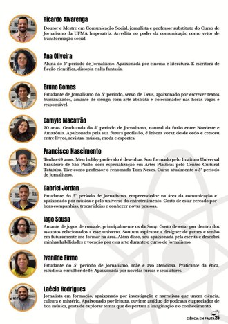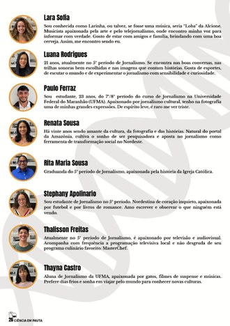 “A Ciência em Pauta é mais do que uma revista. É um ato político, é um espaço em que a universidade escuta e devolve para a sociedade o conhecimento que ela ajuda a produzir. Participar desse processo nos mostrou que o jornalismo pode e deve ser uma ferramenta de transformação”, destacou o estudante Bruno Guilherme, responsável pelo design gráfico da publicação.