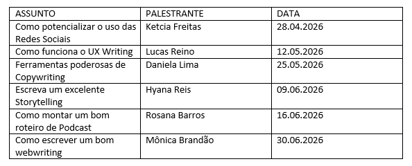 A iniciativa é uma atividade de extensão da disciplina de “Textos para ambientes digitais”, e consiste em um ciclo de bate-papos sobre a escrita de textos para veículos de notícias digitais e as ferramentas textuais utilizadas nesse processo de produção jornalístico.