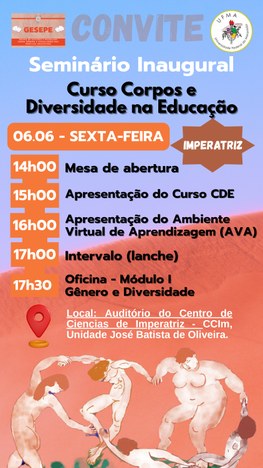O grupo de pesquisa Gênero e Sexualidade nas Práticas Educativas (GESEPE) e o Programa de Pós-Graduação em Educação e Práticas Educativas (PPGEPE) divulgam a lista das inscrições aprovadas para participarem do curso Corpos e Diversidade na Educação (CDE).