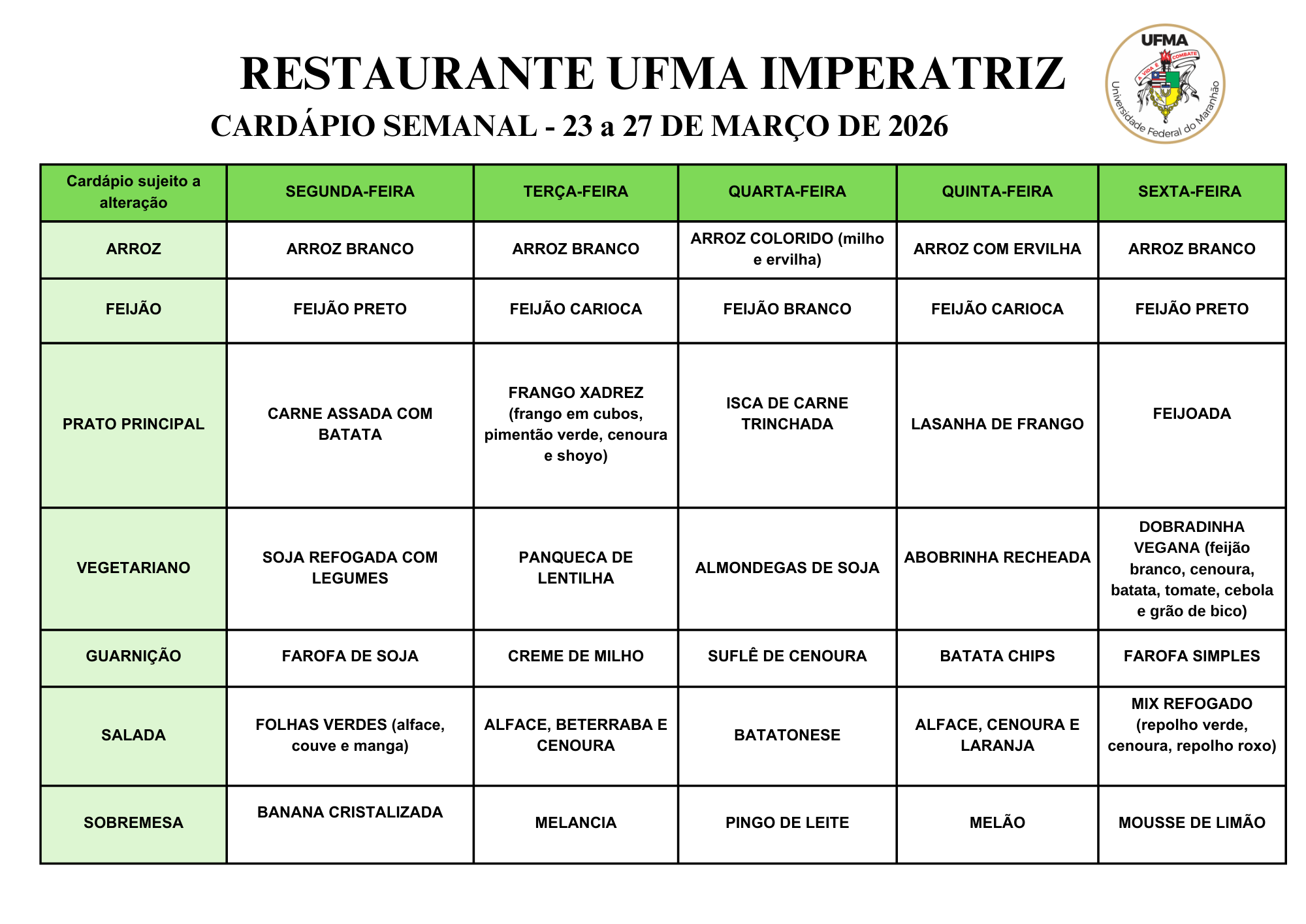 CARDÁPIO MENSAL