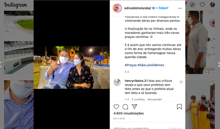 (A partir do minuto 1:17) Edivaldo Holanda Júnior: "A cidade tem recebido o maior volume da sua história de investimentos por parte da prefeitura de São Luís através do programa São Luís em Obras." Clique aqui para acessar o post no Instagram.