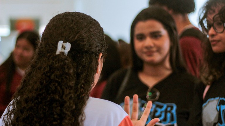 Sabrina Oliveira ainda conta um pouco sobre a sua experiência pessoal enquanto vestibulanda. “Na verdade, eu, infelizmente, nunca cheguei a vir a uma Feira das Profissões do ensino médio. Tenho certeza que essa experiência poderia ter esclarecido muito o meu caminho, porque eu sou uma pessoa que já está no terceiro curso de graduação e agora que eu estou me encontrando, muitos anos depois de ter me formado no ensino médio. Se eu tivesse conversado com alunos desse jeito, teria sido uma coisa muito mais esclarecedora, teria sido muito mais fácil tomar a minha decisão, porque eu cheguei ao Curso de Comunicação justamente conversando com pessoas que eu conheci durante a minha vida falando sobre a profissão, foi aí que eu comecei a entender que talvez esse pudesse ser um caminho que eu gostaria de tomar”, relatou.