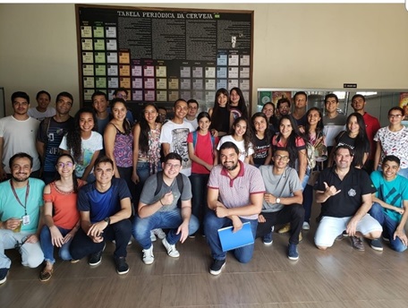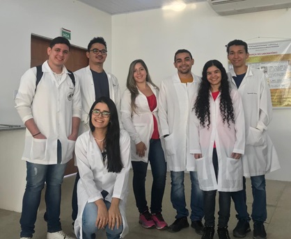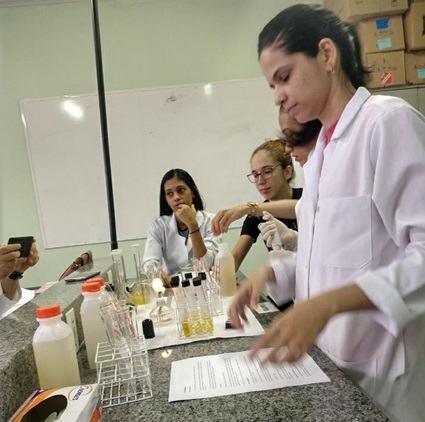 Aula prática de Bioquímica Ambiental no laboratório de química.