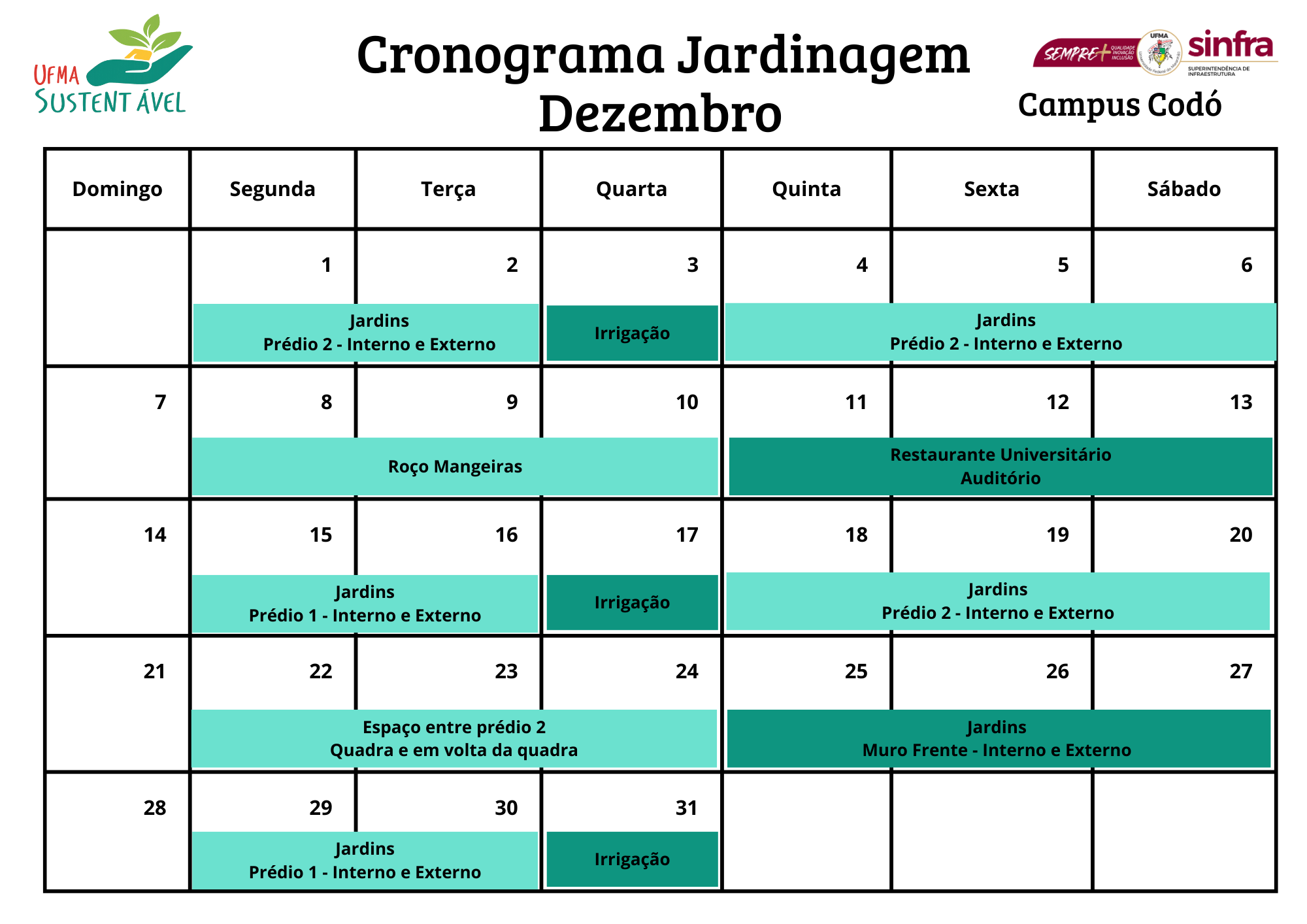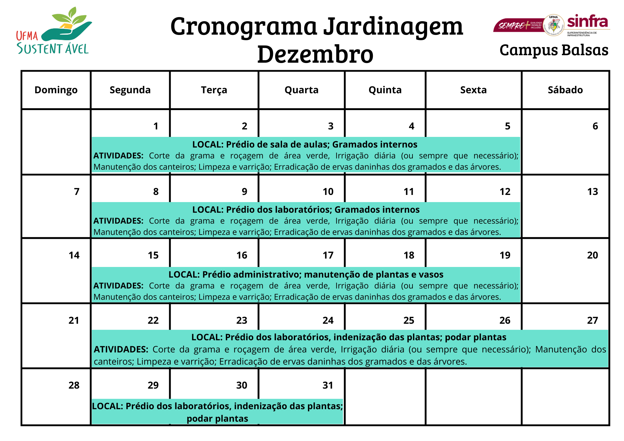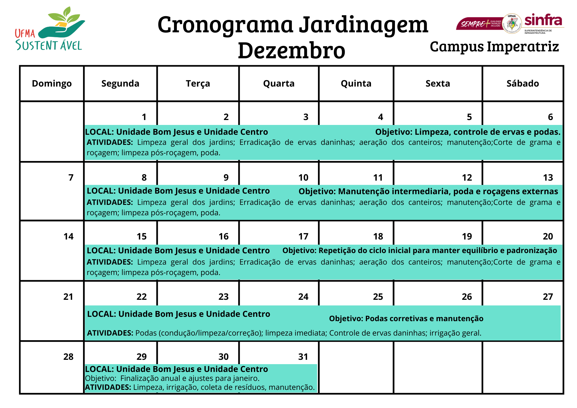📅 Atenção, Comunidade UFMA! O Cronograma da Jardinagem de Dezembro já está disponível !
