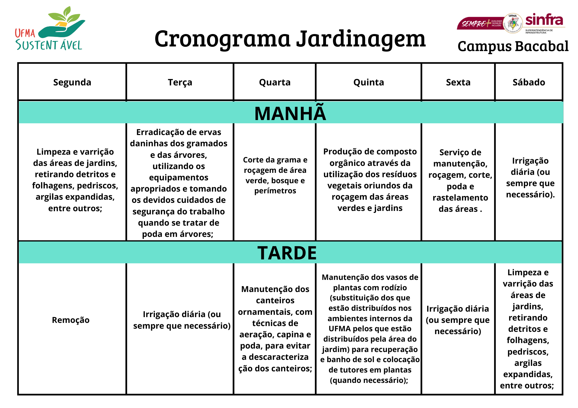 #UFMA #SINFRA #DICMA #Conservação #MeioAmbiente #JardinagemUFMA