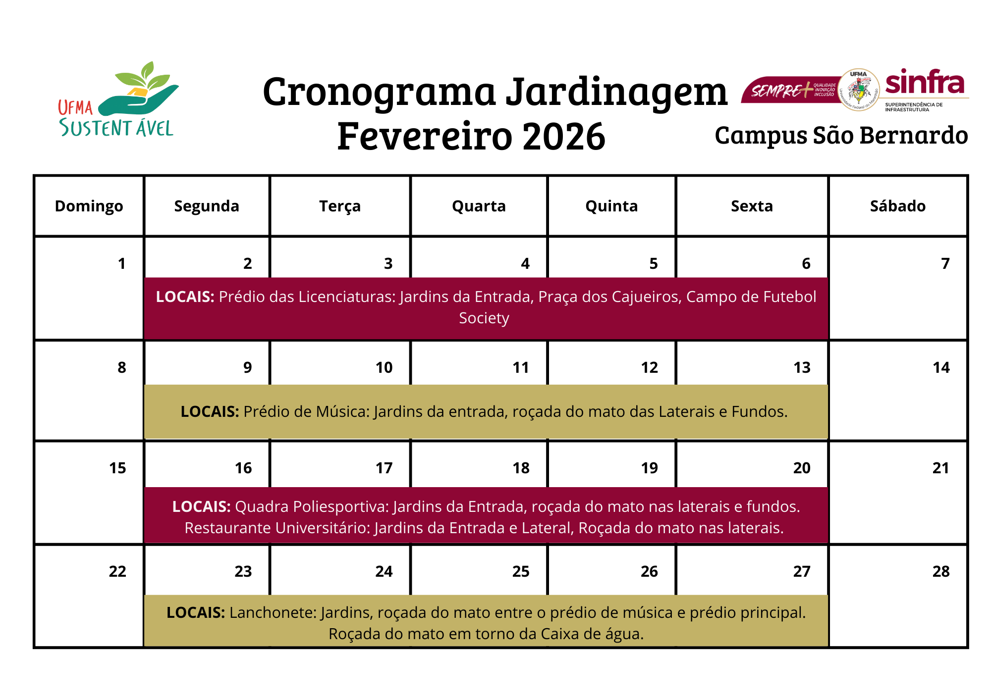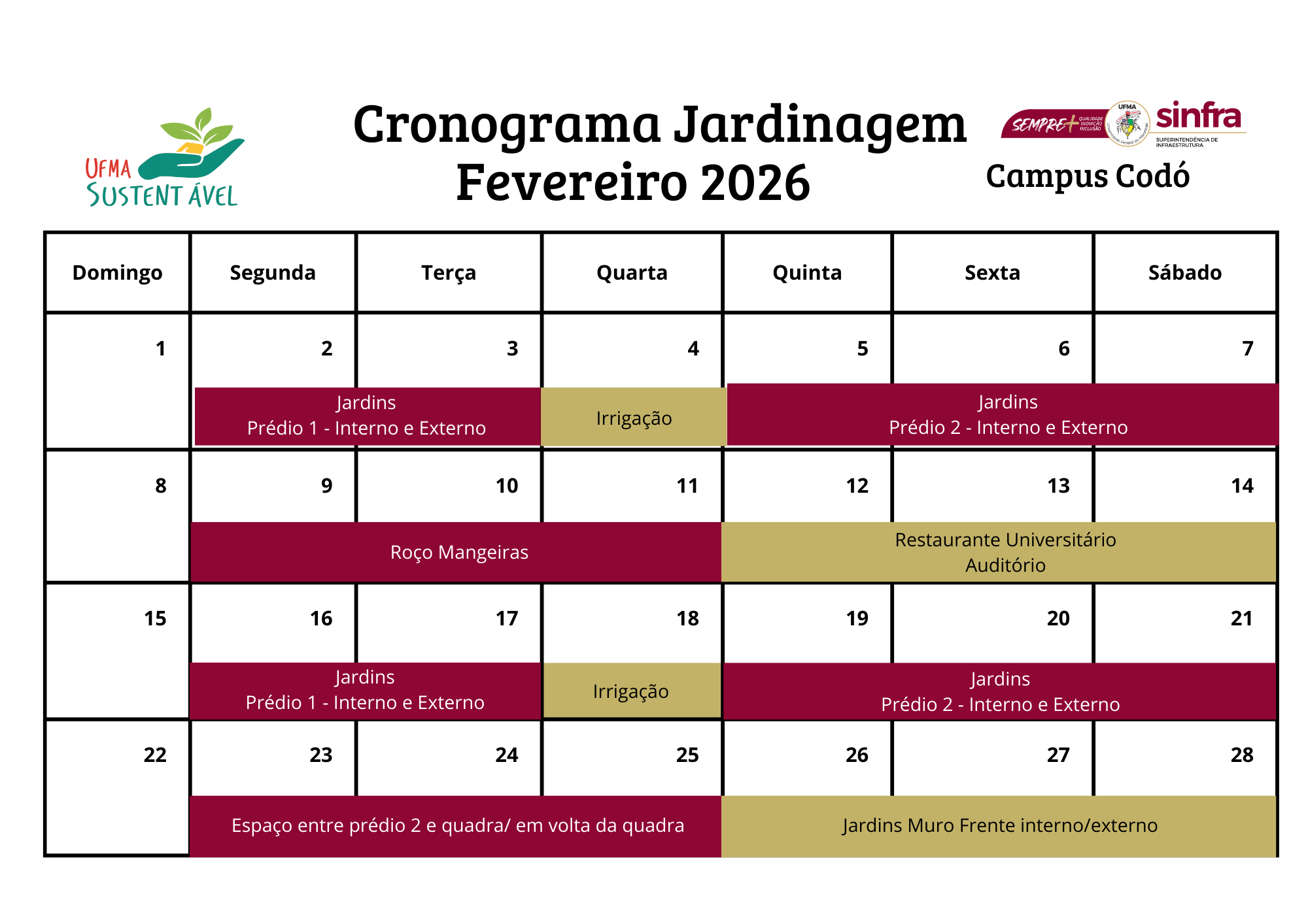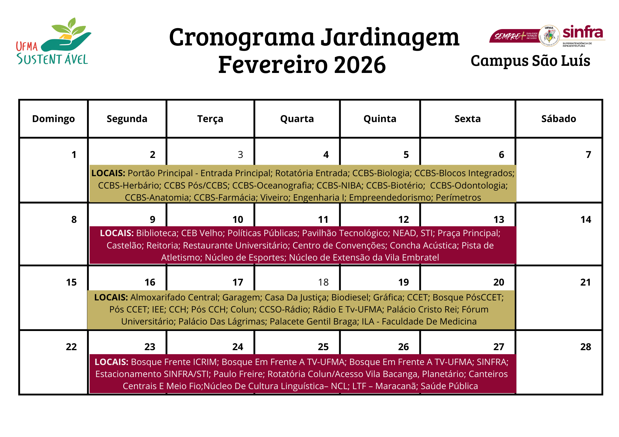 📅 Atenção, Comunidade UFMA! O Cronograma da Jardinagem de Fevereiro já está disponível !