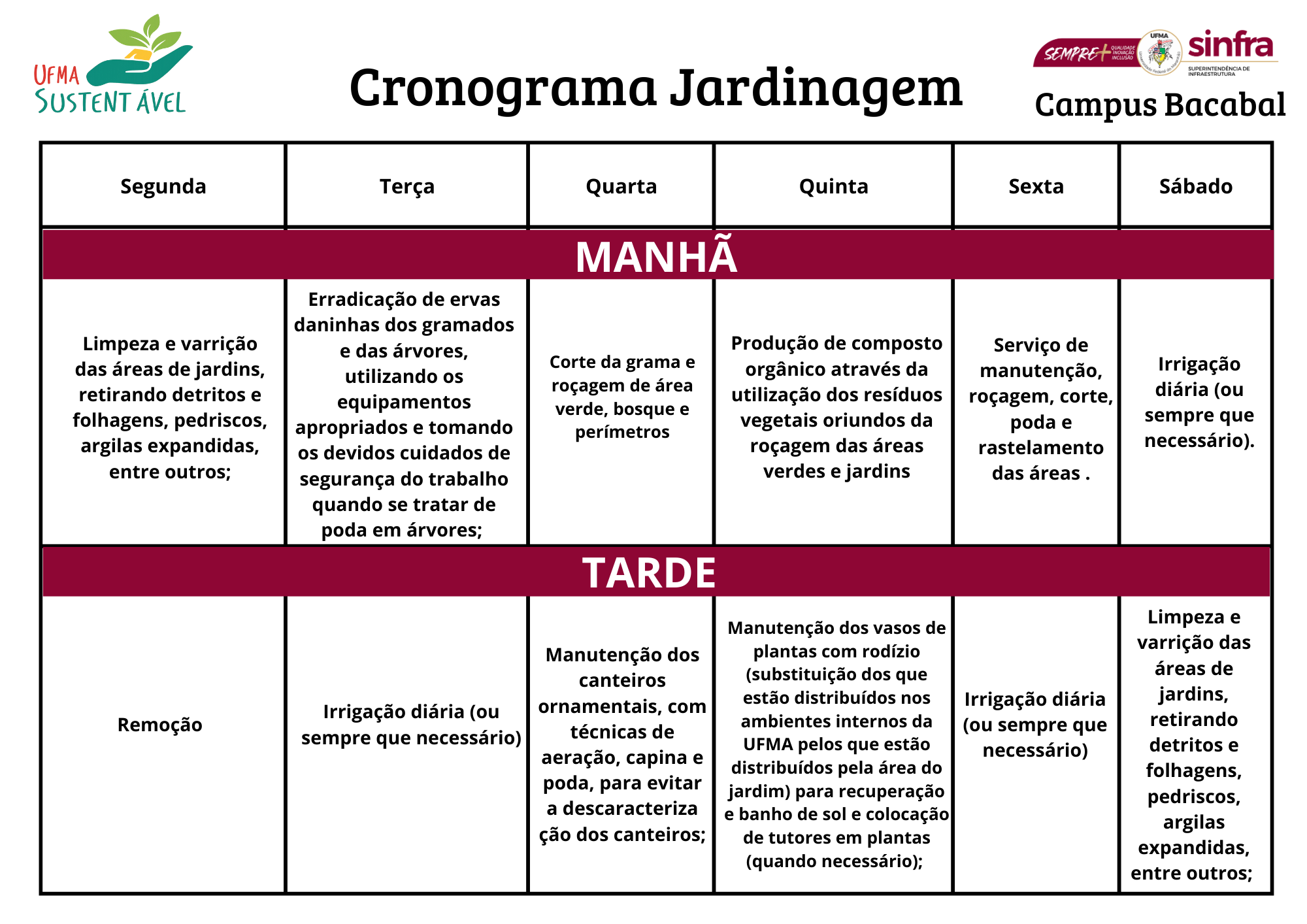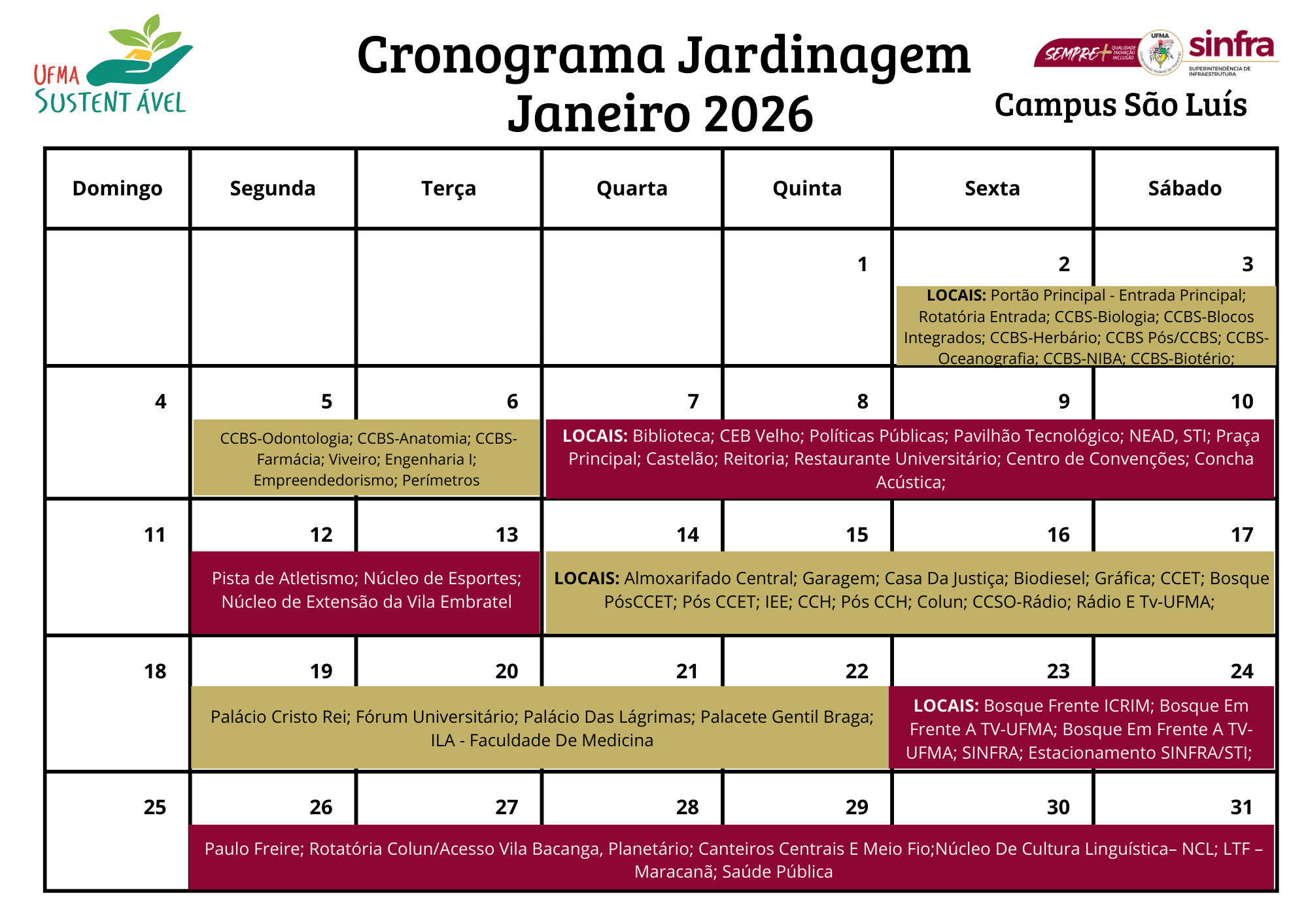 📅 Atenção, Comunidade UFMA! O Cronograma da Jardinagem de Janeiro já está disponível !