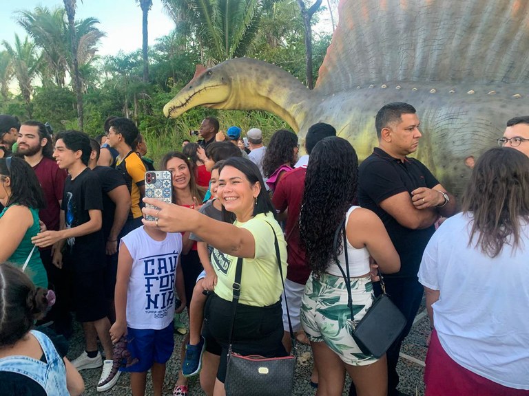 Uma multidão de pais e mães, acompanhando seus filhos, se aglomerou, no último sábado, 1º, para ver a exposição da réplica em tamanho real do dinossauro encontrado no Maranhão, o Spinosaurus. O animal, que viveu aproximadamente entre 95 miçhões e 105 milhões de anos atrás, teve seus fósseis descobertos às margens do Rio Itapecuru, na cidade de Coroatá (MA). De hábitos semiaquáticos e dieta predominantemente piscívora, os espinosauros adultos podiam atingir mais de 15 metros de comprimento. O gigante e exótico dinossauro predador que viveu no norte da África e no norte da América do Sul é considerado o maior predador do Cretáceo.