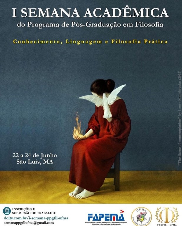 A I Semana Acadêmica do Programa de Pós-Graduação em Filosofia (PPGFIL) da UFMA ocorrerá entre os dias 22 e 24 de junho, na modalidade presencial. As inscrições serão feitas via preenchimento de formulário on-line para a submissão de trabalhos e participação em minicursos. Em sua primeira edição, o tema será “Conhecimento linguagem e filosofia prática”, que visa à promoção e popularização das pesquisas e atividades filosóficas no Maranhão, por meio de conferências, mesas-redondas, minicursos e comunicações.