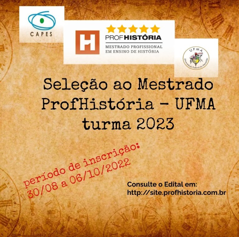 O Programa de Pós-Graduação Stricto Sensu em Ensino de História abre inscrições, até o dia 6 de outubro, para a turma 2023 do Mestrado Profissional em Ensino Médio de História. São ofertadas catorze vagas para o curso no Câmpus São Luís, de modo presencial, coordenado pela Universidade Federal do Rio de Janeiro (UFRJ). O Mestrado é destinado a professores e profissionais que atuam na rede pública da educação básica.