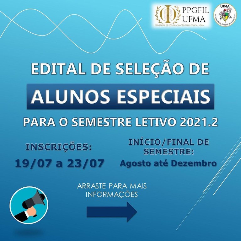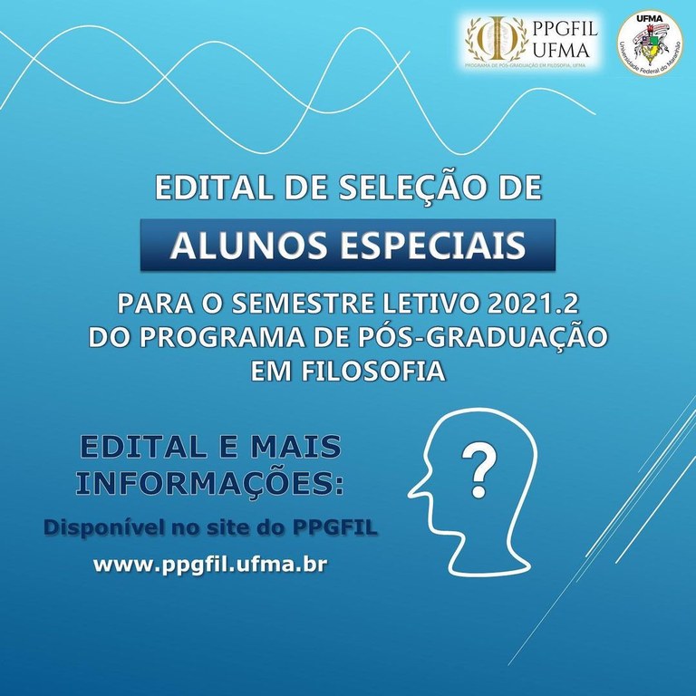 Para se inscrever na disciplina escolhida, o interessado deverá enviar um e-mail para ppgfil.cch@ufma.br indicando o interesse. O resultado do seletivo para alunos especiais será divulgado no dia 26 de julho, no site do PPGFIL. As matrículas deverão ser realizadas entre os dias 29 e 31 deste mês, via e-mail. As aulas têm previsão de se iniciarem no dia 9 de agosto.