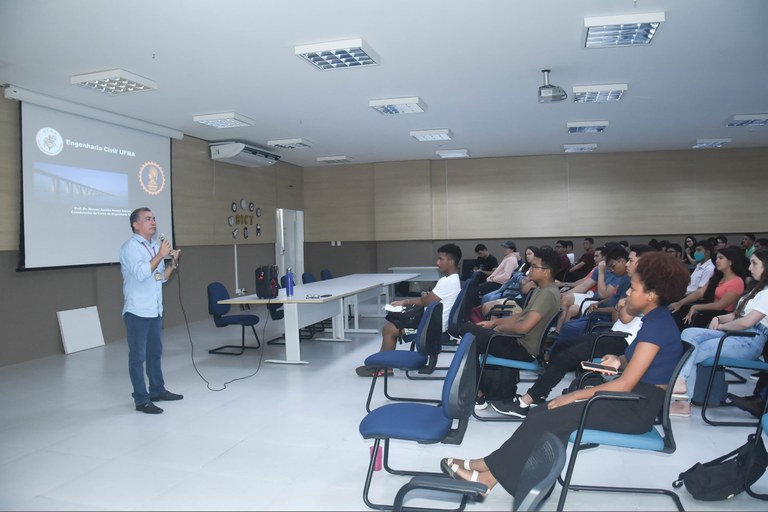 Ocorreu, na terça-feira, 28, a palestra do coordenador do curso de Engenharia Civil Marcos Aurélio Araújo Santos, como parte da programação do segundo dia da Semana de Acolhida dos Calouros do Bacharelado Interdisciplinar em Ciência e Tecnologia (BICT). O evento, realizado no prédio do BICT, abordou a importância da graduação em Engenharia Civil e apresentou os diversos aspectos do curso.