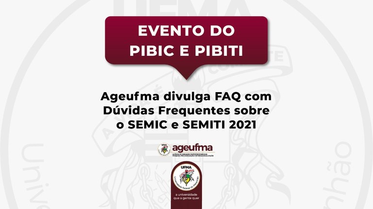 A abertura dos eventos Semic e Semiti da UFMA ocorrerá no dia 13 de dezembro de 2021, e a programação de apresentações vai até o dia 16 do mesmo mês. As inscrições dos alunos Pibic e Pibiti participantes desse evento ocorrem entre 16 e 30 de novembro e serão realizadas apresentações orais, síncronas e assíncronas no Youtube da Ageufma. Considerando isso, para dirimir possíveis dúvidas sobre o formato on-line da realização do Semic/Semiti 2021, a Diretoria de Pesquisa e Inovação Tecnológica (DPIT) da Ageufma preparou um FAQ com as Perguntas e Respostas mais frequentes. Confira, abaixo, as principais informações sobre a realização dos eventos.