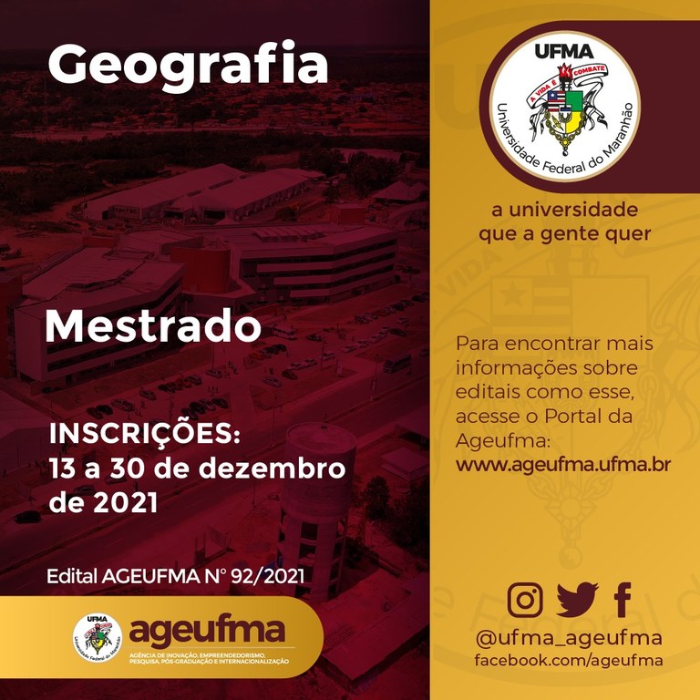 Ageufma divulga seletivo para Programa de Pós-Graduação em Geografia