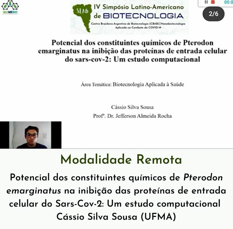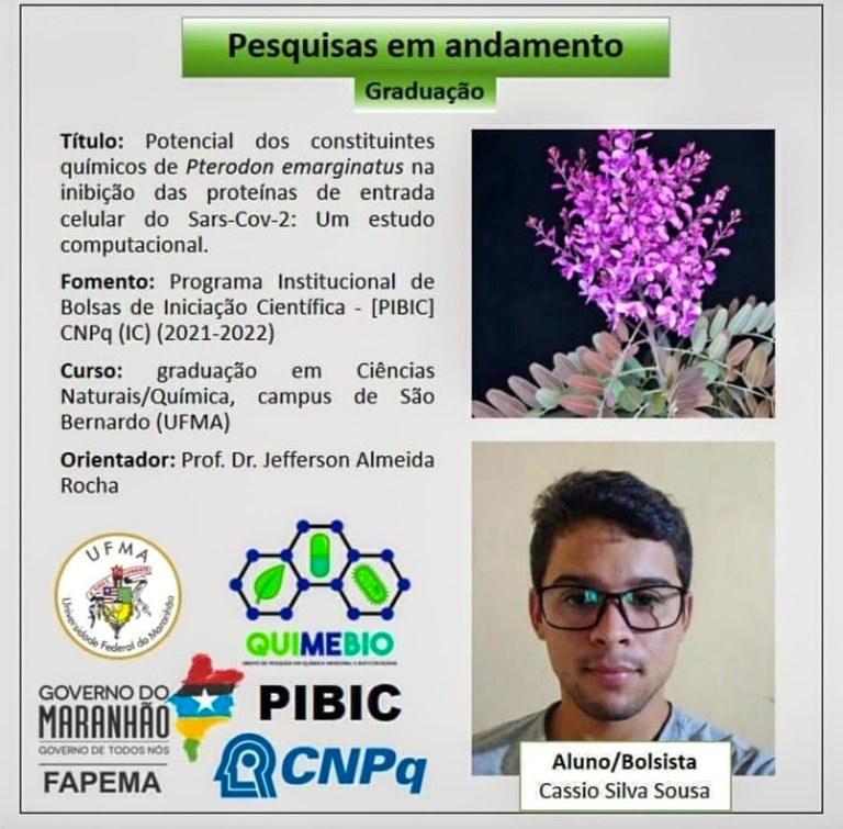 O professor Rocha relatou que, devido à pandemia de covid-19, surgiu o interesse de buscar na flora os elementos necessários para um farmacológico que pudesse ser usado na inibição do vírus, chegando até a sucupira, planta típica do Maranhão e tema do trabalho apresentado.. Ele destacou que a interação entre os elementos constituintes da planta e as proteínas do Sars-Cov-2 trouxe resultados promissores. “Como pesquisadores, deveríamos contribuir de alguma forma para a ciência”, pontuou.