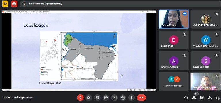 O segundo momento da pesquisa aconteceu no dia 08 de novembro, com uma palestra com a pesquisadora e professora Valéria Moura, com o tema “Turismo de Base Comunitária e a Ecomuseologia: experiências com a Associação de Catadores de mariscos do município de Ilha Grande/Piauí/Brasil”, onde foi discutido o processo de construção do roteiro turístico. Valéria apresentou sua pesquisa, que tem escolha metodológica, baseando-se na pesquisa da ação e construção das oficinas colaborativas com as marisqueiras para pensar produto ofertado e suas melhorias.