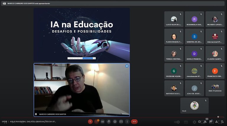 Foi realizada, na manhã dessa terça-feira, 21, a aula inaugural das pós-graduações, por meio do canal no Youtube da Agência de Inovação, Empreendedorismo, Pesquisa, Pós-Graduação e Internacionalização da UFMA (Ageufma). Ministrada pelo professor Márcio Carneiro, a aula pautou o uso de inteligência artificial no âmbito educacional, trazendo desafios e possibilidades na sua utilização.