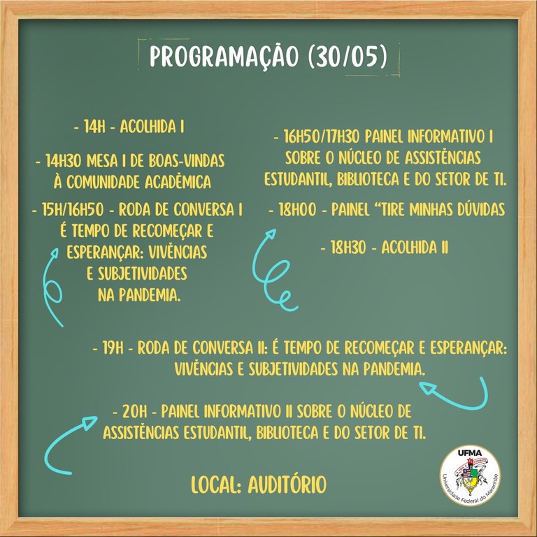 Na segunda-feira, 30, o Centro de Ciências de Codó promoveu a abertura do acolhimento de boas-vindas à comunidade acadêmica. O evento é direcionado aos discentes, especialmente, aos novos ingressantes dos cursos de Pedagogia, Ciências Naturais e Ciências Humanas. A programação do evento tem duração de três dias, com término previsto para as 18h de quarta-feira, 1º de junho, com atividade cultural. Os três cursos realizam atividades em comum na programação, com adaptações de acordo com a natureza da formação de cada um.