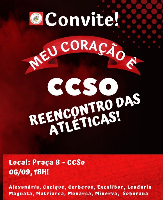 Nessa terça-feira, 6, ocorrerá o Reencontro das Atléticas dos Cursos do Centro de Ciências Sociais, na praça 8 do CCSO, às 18h. Estarão presentes os representantes das atléticas Soberana (Administração), Alexandria (Biblioteconomia), Ciências Econômicas (Monarca), Ciências Contábeis (Cacique), Ciências Imobiliárias (Magnata), Cerberus (Comunicação Social), Excalibur (Hotelaria), Lendária (Direito), Minerva (Pedagogia) e Matriarca (Serviço Social). A acolhida tem o objetivo de recepcionar os estudantes e marca o retorno às atividades presenciais, após dois anos de pandemia.