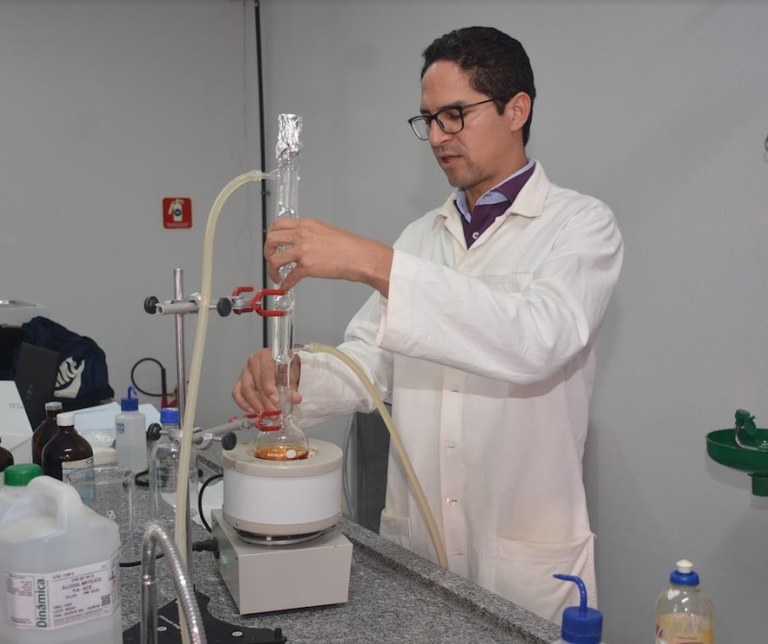 O professor comentou como está sintetizando moléculas que não existem na natureza. “Elas, naturalmente, são inéditas. A minha ideia é aplicá-las em meio biológico e, com isso, testar em atividades antibacterial, antifungal e antiparasitário. Há moléculas das mais variadas estruturas que contêm boas atividades, como, por exemplo, as do tipo orgânica e inorgânica. Por outro lado, há moléculas que têm as mais variadas estruturas, mas sem utilidade alguma, então, pode-se dizer que o processo é intuitivo”, complementou.