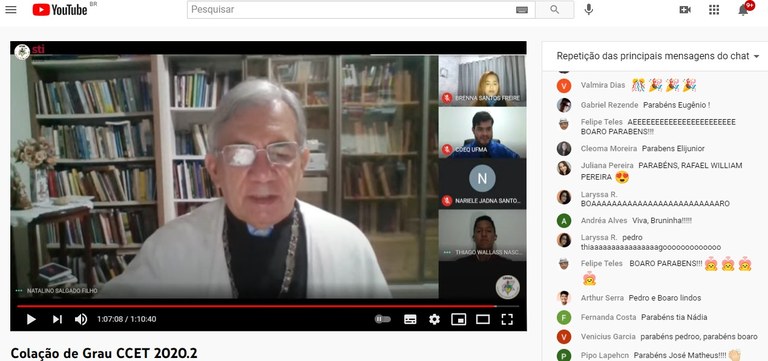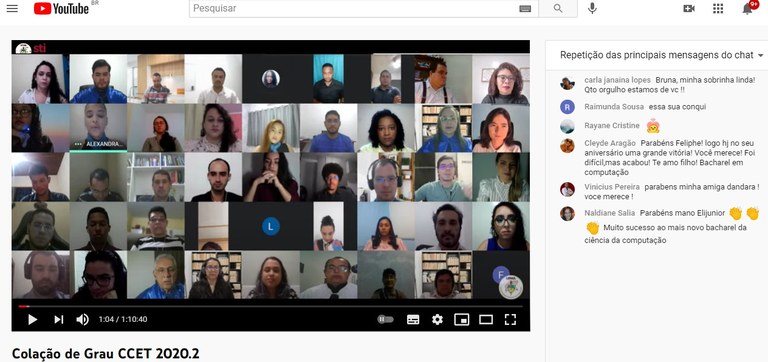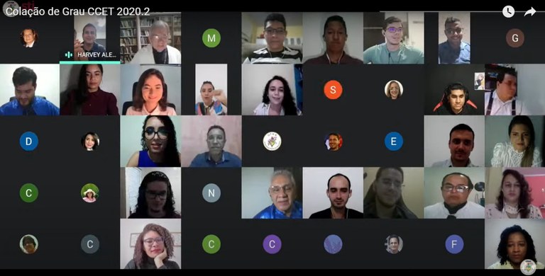 Cinquenta e dois estudantes do CCET recebem o grau em cerimônia virtual referente a 2020.2, com transmissão pelo Youtube