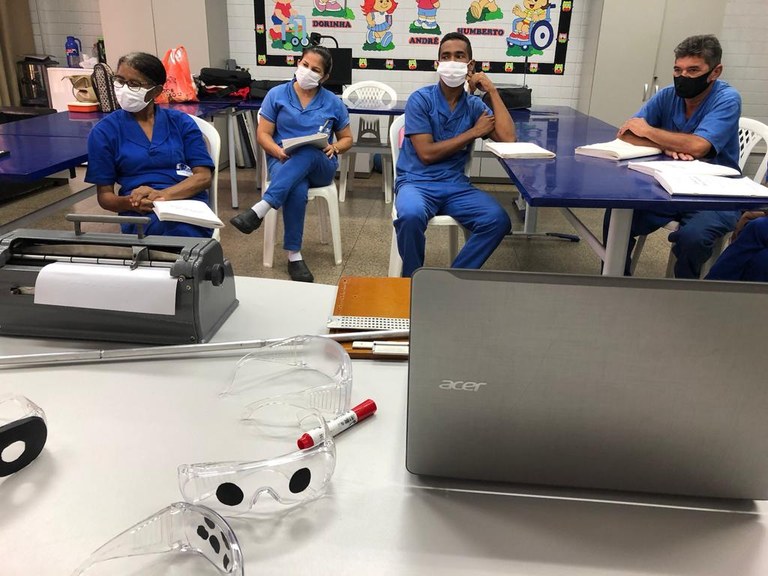 A atividade abordou os conceitos de educação inclusiva e algumas especificidades dos estudantes da educação especial. Os participantes aprenderam sobre como agir no cotidiano escolar com cada grupo de alunos. No final, foram apresentados alguns recursos específicos do Napnee, bem como foram realizadas vivências da condição de deficiência visual, com usos de óculos que simulam a baixa visão, além da técnica de guia vidente e uso da bengala longa.
