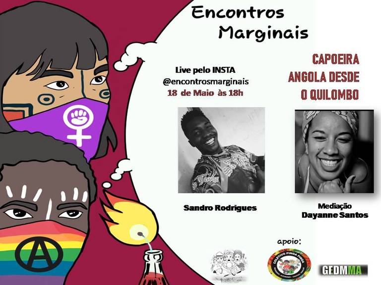 Segundo a pesquisadora, o convidado dessa live é filho do grupo Mandingueiros do Amanhã, coordenado pelo mestre Bamba, em São Luís, e que há anos vem, por meio da capoeira, fortalecendo a luta e os territórios negros com o coletivo Encontro Marginais, partilhando de sua trajetória como aluno e professor de uma tradição.