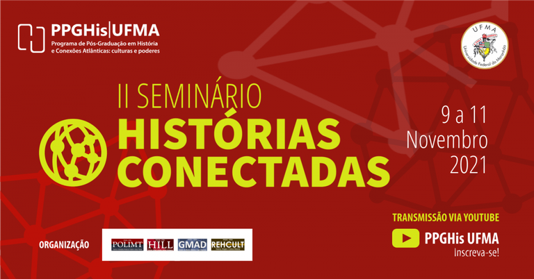 O programa de Pós-Graduação em História da Universidade Federal do Maranhão (PPGHIS-UFMA) realiza, entre os dias 9 e 11 de novembro, o II seminário Histórias conectadas. O evento reúne integrantes e colaboradores nacionais e internacionais vinculados a PPGHIS-UFMA. O evento acontece de forma virtual através da plataforma do YouTube do PPGHIS, com mesas redondas e conferências.