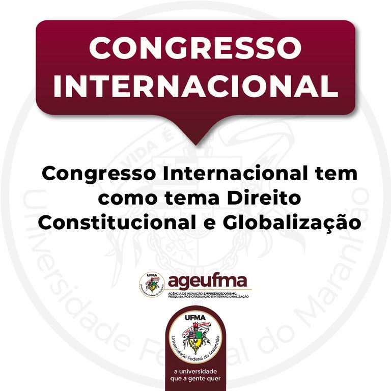 A Universidade Federal do Maranhão, por meio da Agência de Inovação, Empreendedorismo, Pesquisa, Pós-Graduação e Internacionalização (Ageufma), informa que, no dia 24 deste mês, das 9h às 19h, ocorrerá o Congresso Internacional Direito Constitucional e o Mundo Globalizado, evento gratuito realizado pelo Núcleo de Estudos de Direito Constitucional (Nedc).
