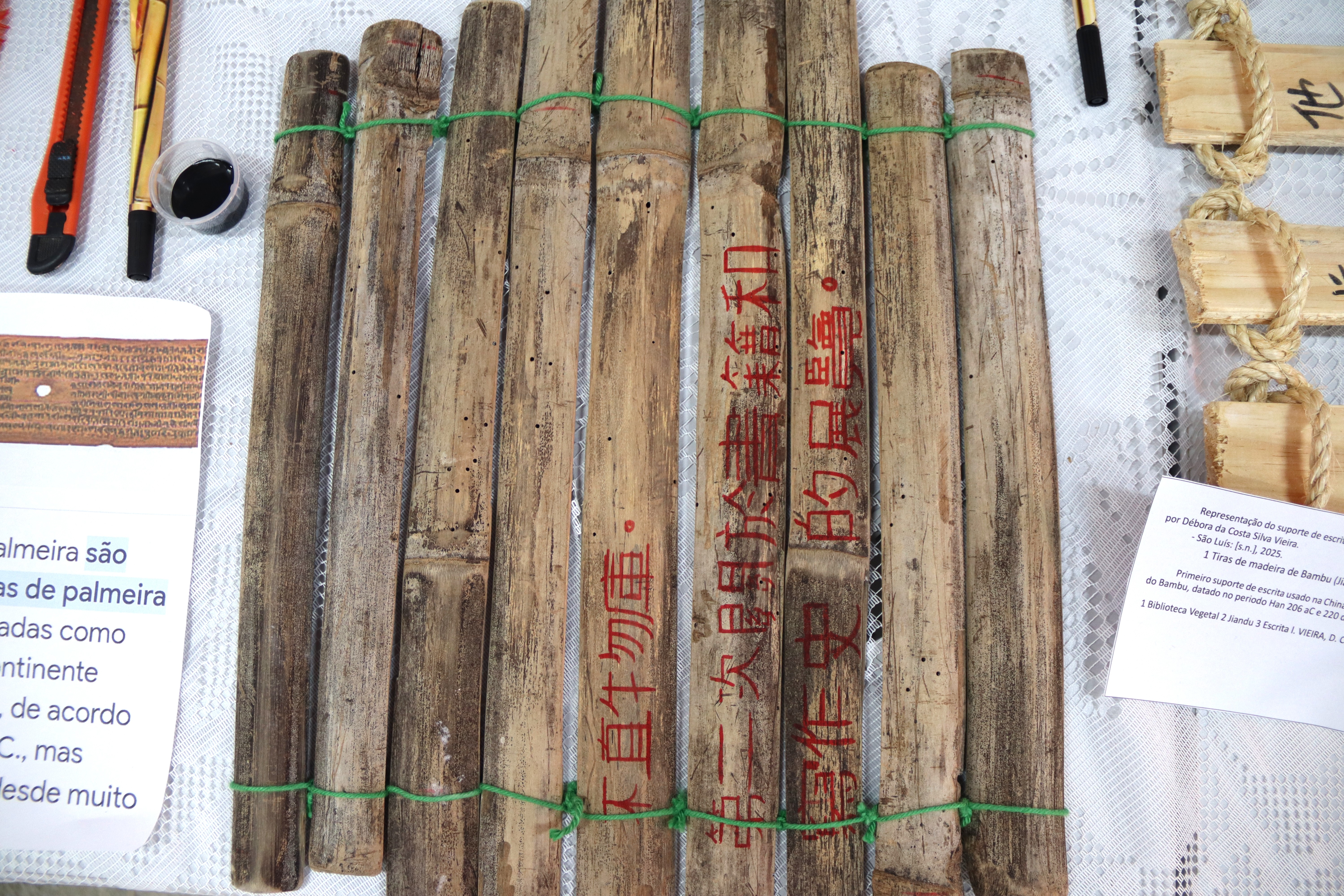Durante o processo de organização e planejamento da exposição, os estudantes pesquisaram, estudaram e produziram réplicas da cultura material bibliográfica. A turma foi dividida em reino mineral, reino vegetal e reino animal, apresentando as diferenças entre eles e a influência na história da escrita. O envolvimento dos estudantes, desde o estudo e a apresentação do contexto de cada peça, possibilita a ampliação do conhecimento sobre a temática e a importância e mudança da escrita e do livro.