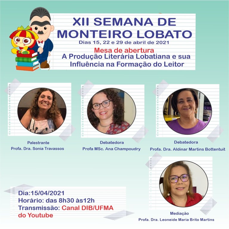Curso de Biblioteconomia abrirá amanhã, 15, a XII Semana Monteiro Lobato, em transmissão pelo canal da Diretoria de Bibliotecas da UFMA no Youtube