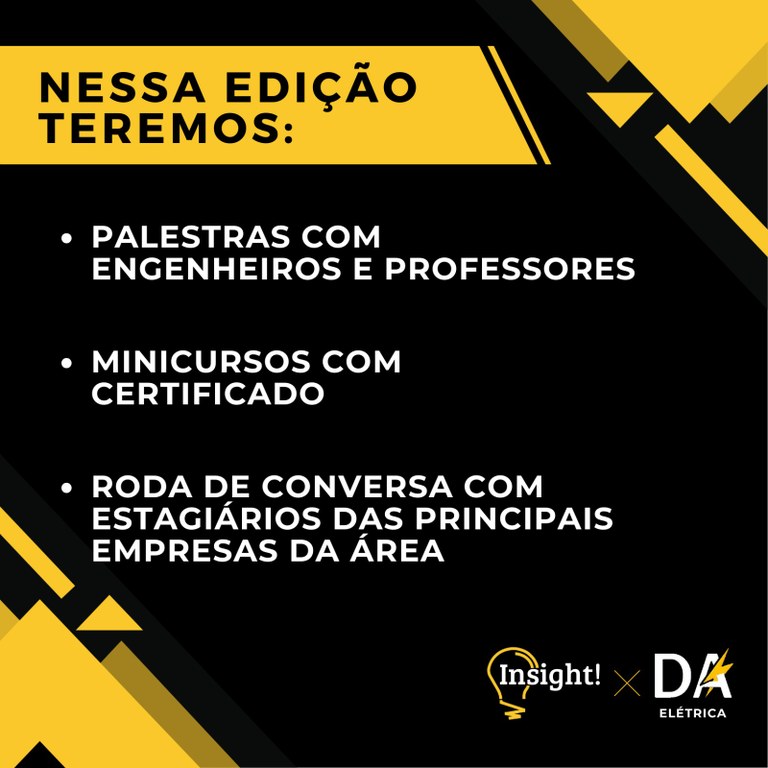 O evento tem por objetivo apresentar aos alunos do curso as perspectivas da carreira e as ferramentas utilizadas em diferentes áreas de atuação de um Engenheiro Eletricista visando aproximar o meio acadêmico ao mercado de trabalho. A edição contará com palestras com engenheiros e professores, minicursos e roda de conversa com estagiários das principais empresas da área.