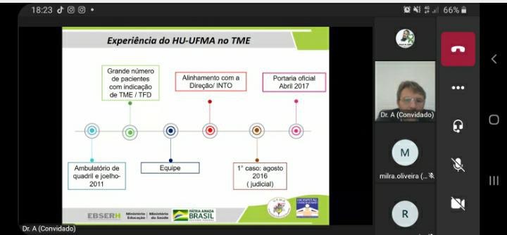 O Hospital Universitário da UFMA (HU-UFMA-Ebserh-MEC) é o único hospital público do Maranhão credenciado junto ao Sistema Nacional de Transplantes (SNT), como captador e transplantador. Diante desse cenário, a Comissão Intra-hospitalar de Doação e Tecidos para Transplantes do HU-UFMA (CIHDOTT) viu a necessidade de organizar o primeiro Curso de Formação de Profissionais em Captação de Tecido Músculo Esquelético com o objetivo de capacitar profissionais da área da saúde para atuar na área de doação e transplante de tecido musculoesquelético, com atitude ética e responsável.