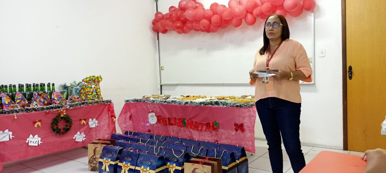 Após a entrega das cestas, os servidores e professores também foram beneficiados com a entrega de presentes, e, em seguida, houve um coffee break.