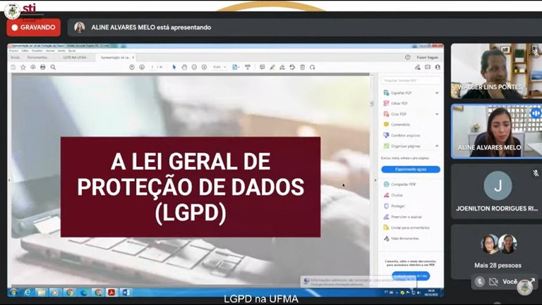A Universidade Federal do Maranhão, por meio da Diretoria de Gestão, Modernização e Transparência (DGMT) realizou ontem, 19 de outubro, uma solenidade sobre a Lei 13.709/2018, conhecida também como a Lei Geral de Proteção de Dados (LGPD), que tem a finalidade de resguadar os direitos e a privacidade dos indivíduos, aplicando-se a organizações públicas e privadas. O objetivo do evento foi apresentar ações realizadas pela Universidade para a adequação conforme as orientações contidas na lei referida e também sobre as próximas ações a serem implantadas.