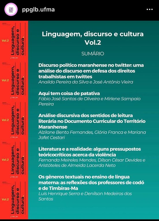 Os docentes do Programa de Pós-Graduação em Letras (PPGLB) do Centro de Ciências de Bacabal publicaram dois volumes da coletânea “Linguagem, Discurso e Cultura”. As obras reúnem diferentes estudos linguísticos e literários feitos por alunos e professores do PPGLB, com finalidade de motivar debates livres sobre os temas abordados e tornar público à comunidade as teorias, as metodologias e as práticas realizadas no interior do estado pela Universidade, especificamente, em Bacabal.