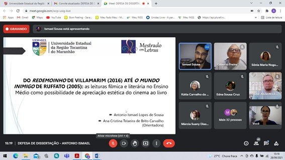 A defesa da dissertação, intitulada “Do redemoinho de Villamarim (2016) até o mundo inimigo de Ruffato (2005): as leituras fílmica e literária no ensino médio como possibilidade de apreciação estética do cinema ao livro”, ocorreu no dia 28 de setembro deste ano. “O mestrado é a realização de um sonho, significa um pequeno passo na busca por mais conhecimento e, consequentemente, no processo contínuo de melhoria como profissional e cidadão. É por meio dos conhecimentos que é possível refletir, problematizar e ampliar as nossas capacidades de percepção e atuação no mundo. Por isso o mestrado em Letras é uma importante conquista, pois aumenta minhas perspectivas na área e me ajuda no meu desenvolvimento pessoal e profissional”, declarou.