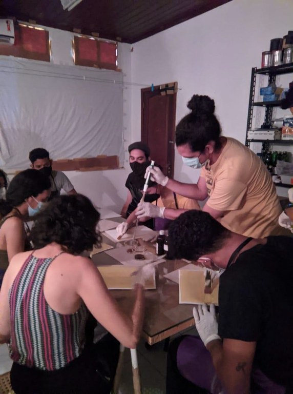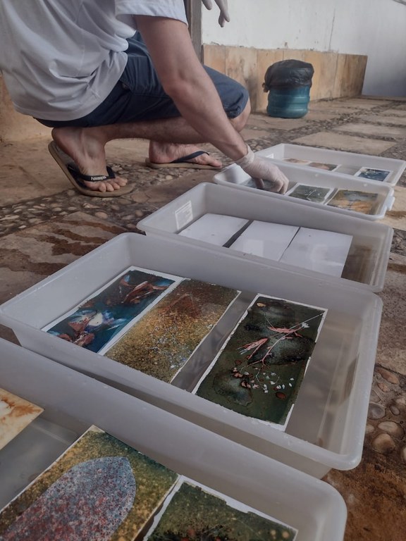 Após terem o domínio de conhecimentos e habilidades, os participantes foram provocados – em época de revoluções digitais em que a maioria da população experimenta a fotografia sobremaneira por meio de telas de celular e computador – a pensar a materialidade da imagem que surge de pigmentos gestados em reações fotoquímicas sobre suportes como papel e tecido, e como estes meios com suas texturas e cores dão uma nova vida às imagens.