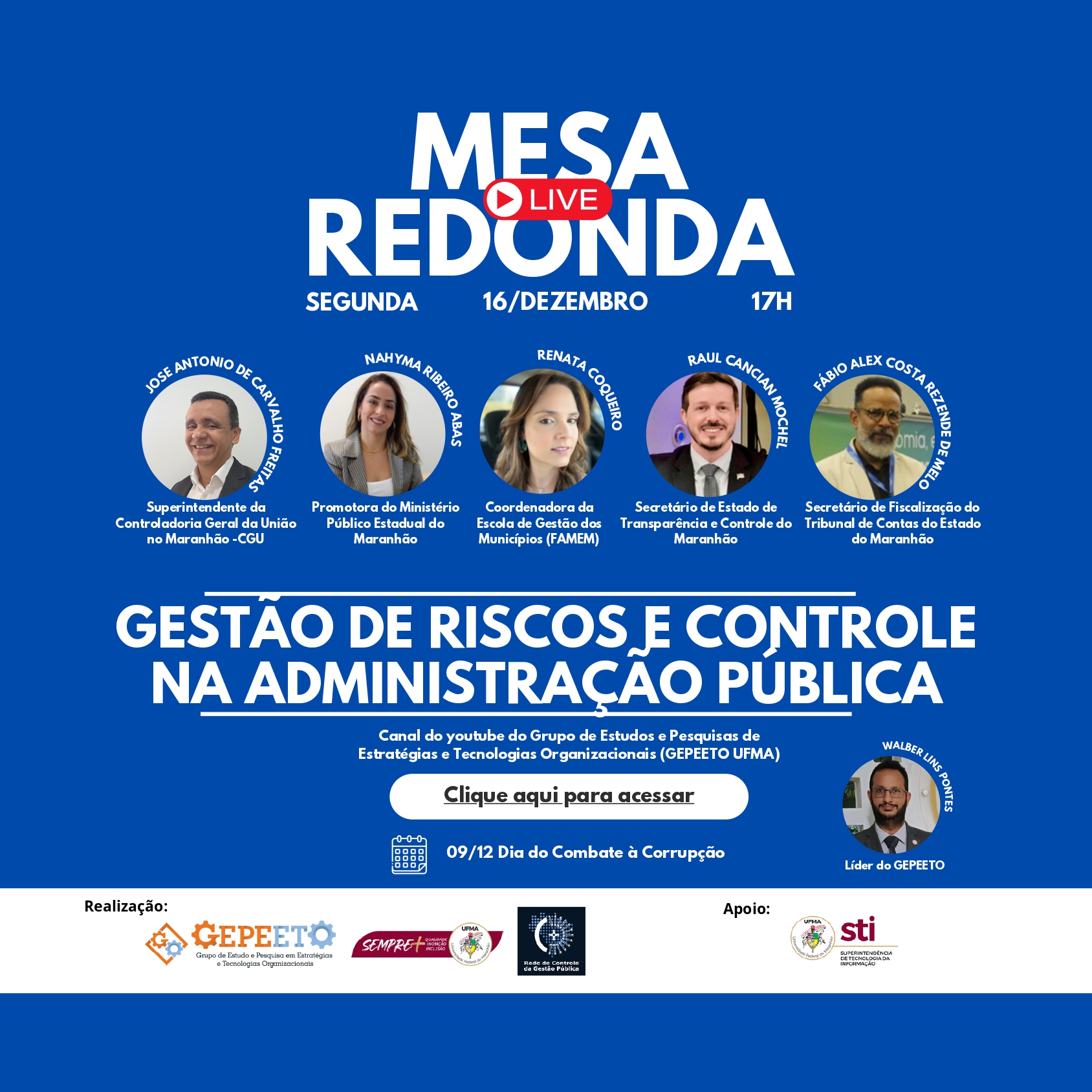 Grupo de Pesquisa da UFMA promove mesa redonda sobre Gestão de Riscos e Controle na Administração Pública
