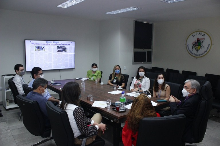 Elas foram recepcionadas na sala de reunião da Unidade Presidente Dutra pela superintendente do HU-UFMA, Joyce Santos Lages, pelo reitor da UFMA, Natalino Salgado Filho, pelo gerente de Administração, Eurico Santos Neto, e demais chefias de setores estratégicos para essa parceria.