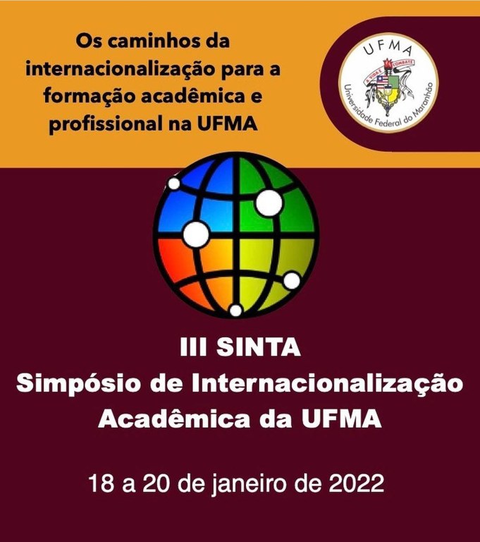 A Pró-Reitoria da Agência de Inovação, Empreendedorismo, Pesquisa, Pós-Graduação e Internacionalização da UFMA (Ageufma) promoverá, de 18 a 20 de janeiro, o III Simpósio de Internacionalização Acadêmica da UFMA (Sinta). O evento ocorrerá por meio do Google Meet, com transmissão pelo canal Ageufma no Youtube, a partir das 9h.