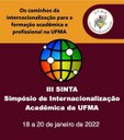 Na manhã de terça-feira, 18, ocorreu a cerimônia de abertura do III Simpósio de Internacionalização Acadêmica (Sinta) da UFMA, promovido pela Diretoria de Internacionalização (DIN) da Agência de Inovação, Empreendedorismo, Pesquisa, Pós-Graduação e Internacionalização (Ageufma). O evento se estenderá até amanhã, 20 de janeiro, de forma on-line, por meio do Google Meet e com transmissão ao vivo pelo Youtube no canal da Ageufma.